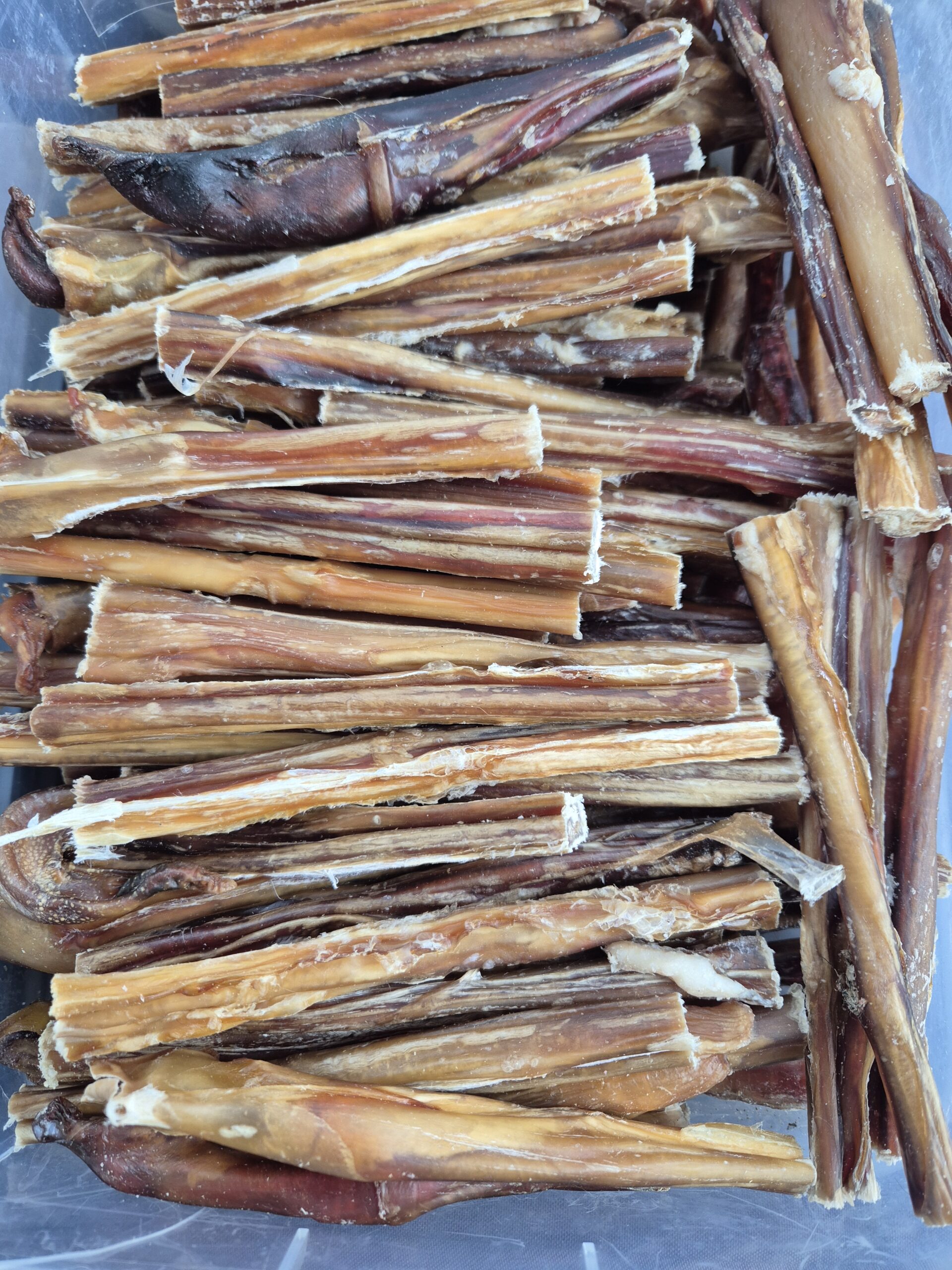 Beef Bully Sticks: 100% Australian Beef pizzle. A great all-natural long-lasting dog chew to help with dental hygiene and satisfying your dogs instinct to chew. No artificial colours, flavours, or preservatives.